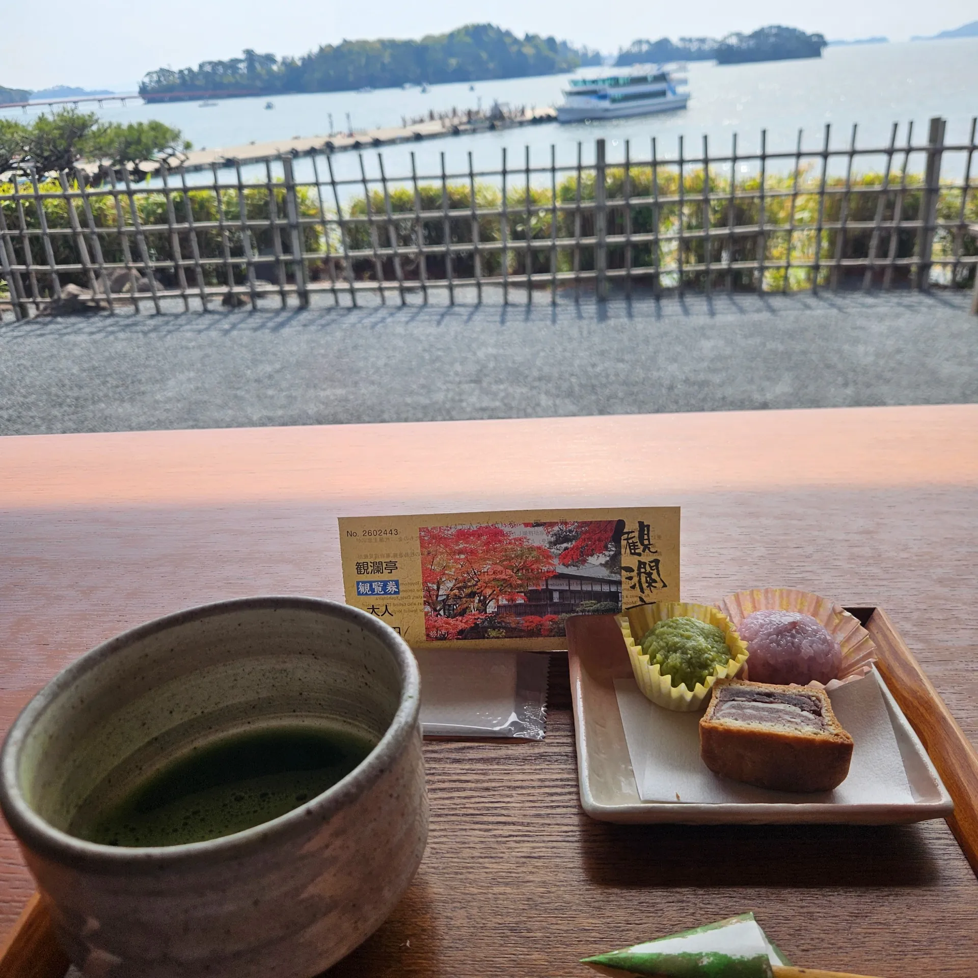 まずは風情ある観瀾亭へ。静かな海を眺めながらいただく抹茶は、格別の味わい🍵✨日常の忙しさを忘れ、ゆったりとした時間が流れていくのを感じました。心がすっと落ち着き、まさに贅沢なひとときです😊